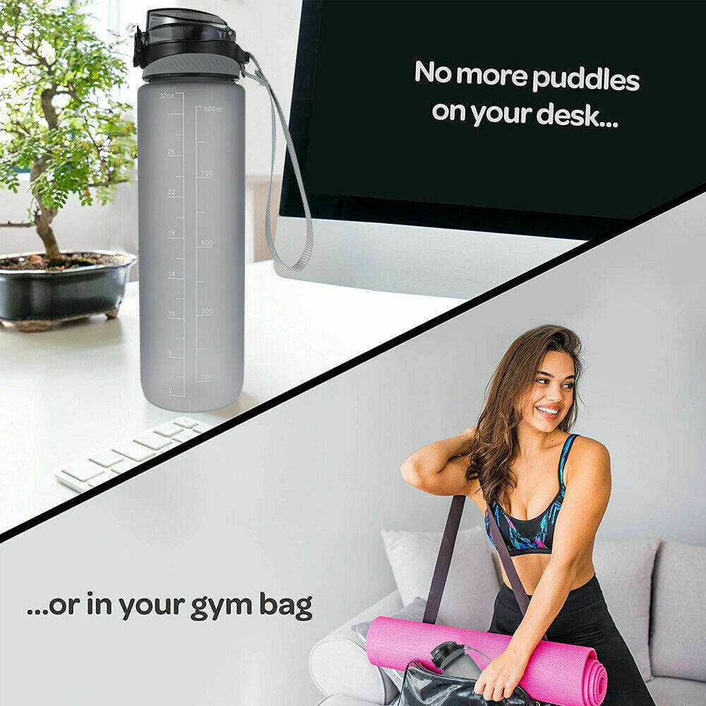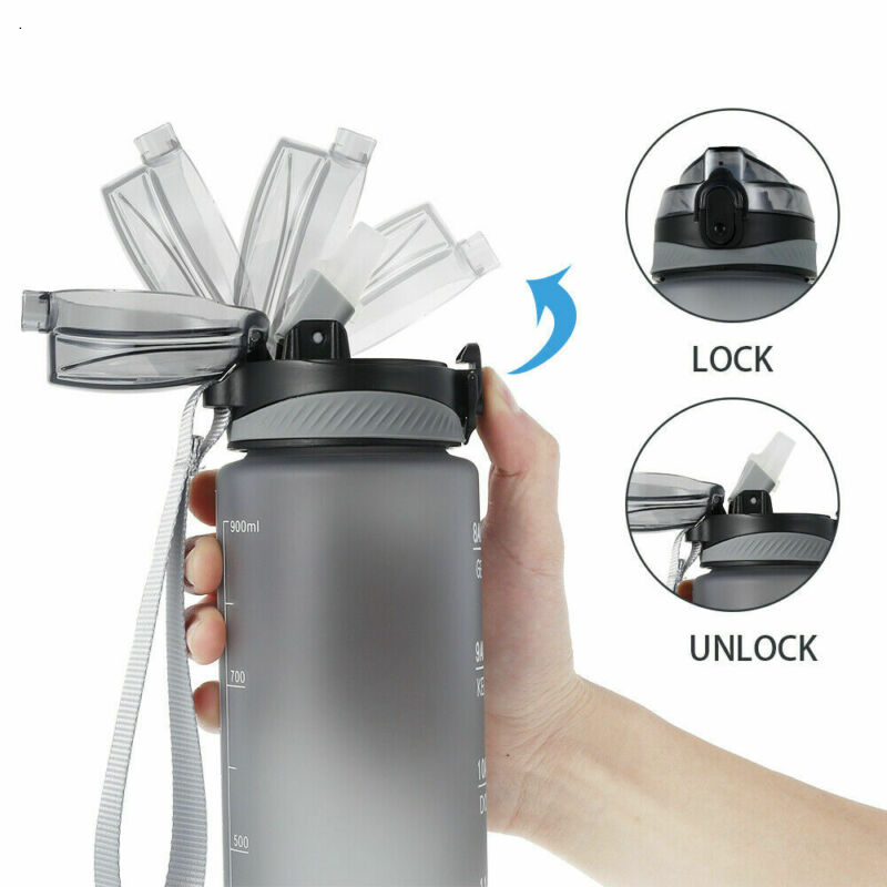 1L Sports Water Bottle Gym Travel Leakproof Drinking Bottle With Straw BPA Free