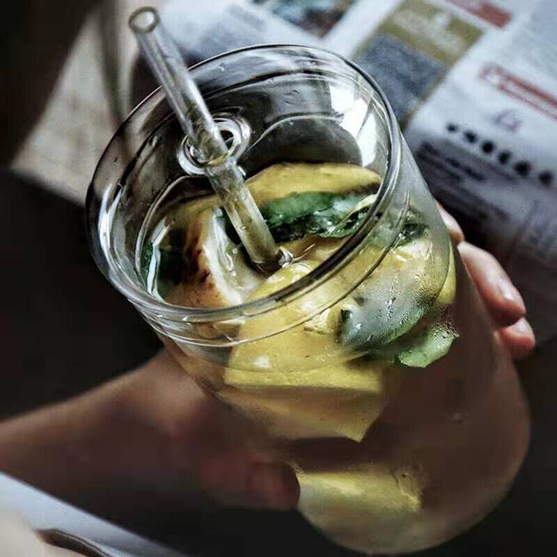 450ml Glass Cup With Lid and Straw Transparent Tea Coffee Cup Juice Glasses Mug