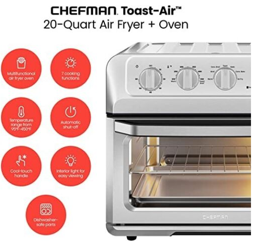 • VERSATILE TEMPS: Whether you’re toasting a bagel, air frying French fries, or baking cookies, the Toast-Air has you covered with a temperature range from 200-450˚F