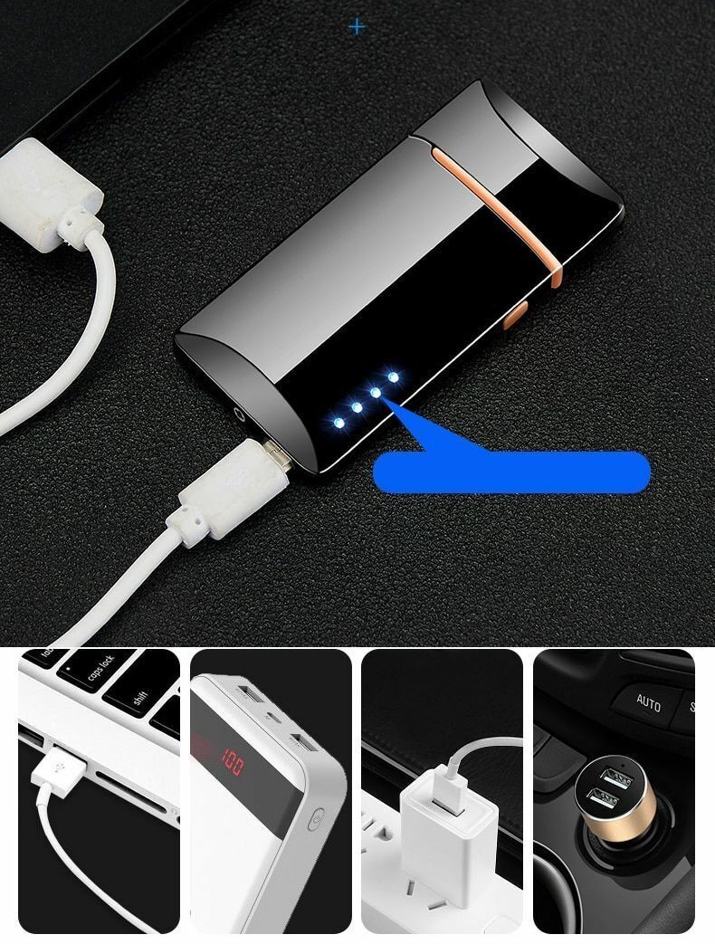 Flameless Electric Mini Metal USB Arc Cigarette Lighter Windproof Led For Men
