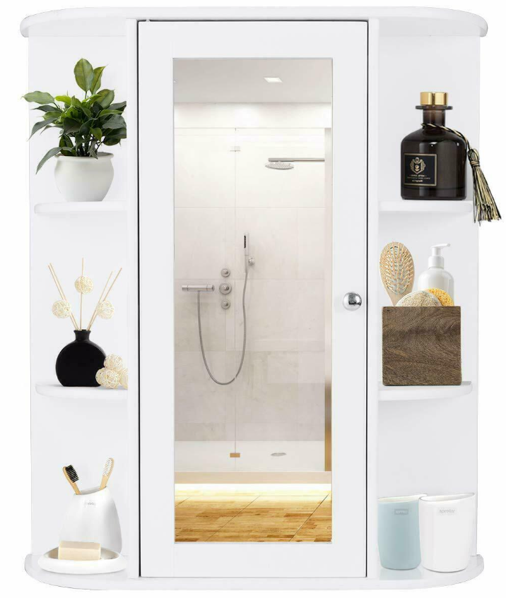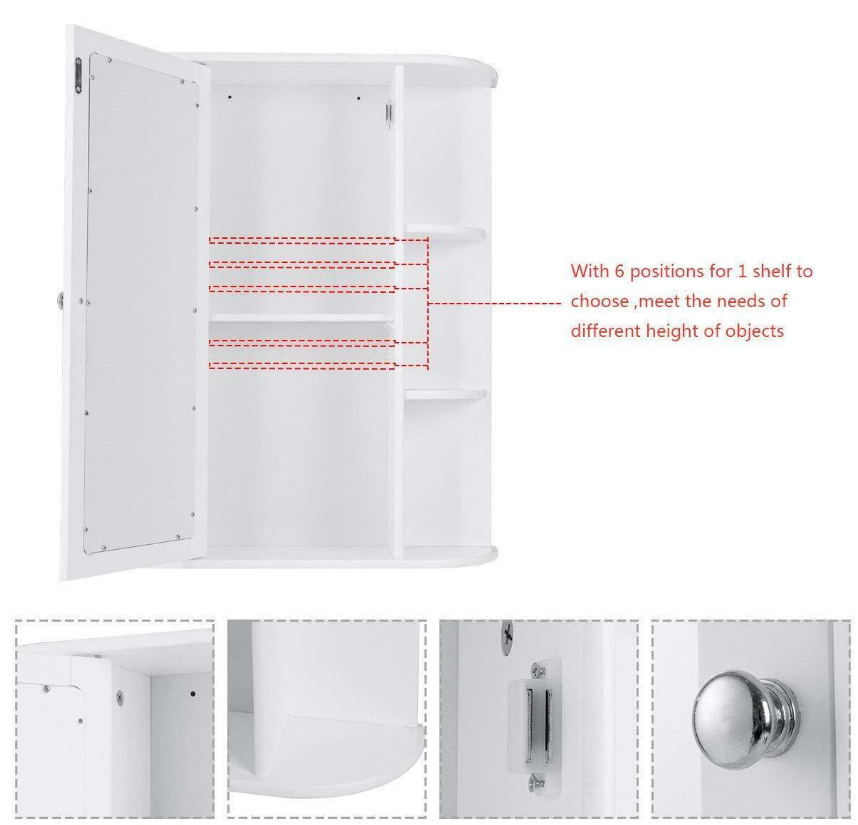 Multi-function Use:The bathroom wall cabinet is ideal for bathroom, bedroom, living room or kitchen. It features enclosed shelf with a mirror door, the mirror door can be opened, there is a lot of space for you to store items. And It also has two open shelves to place towels, soap, tissues and other decorative items. In addition you can also put some green small plants on the open shelves to make your item neat and beautiful