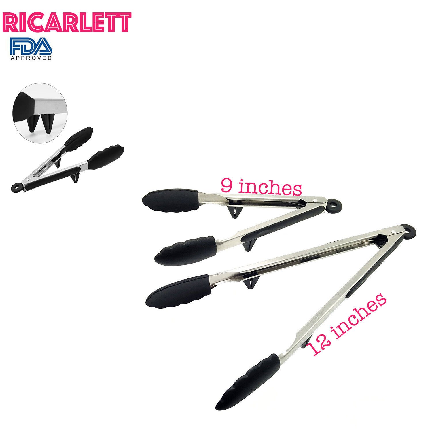 【HIGH QUALITY】These food tongs are designed with one piece non-detachable heads for easy cleaning and the silicone tips is also healthy for life. The silicone coated heads are BPA free and approved by FDA, non-stick friendly to protect your cookware.