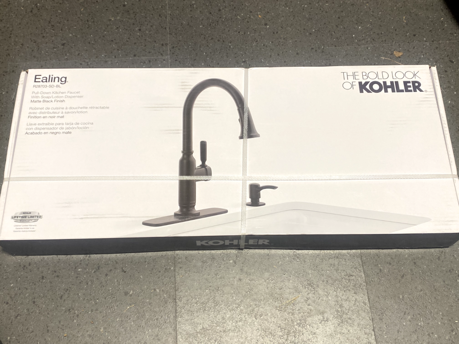 KOHLER Ealing Matte Black Single Handle Pull-down Kitchen Faucet R28703-SD-BL