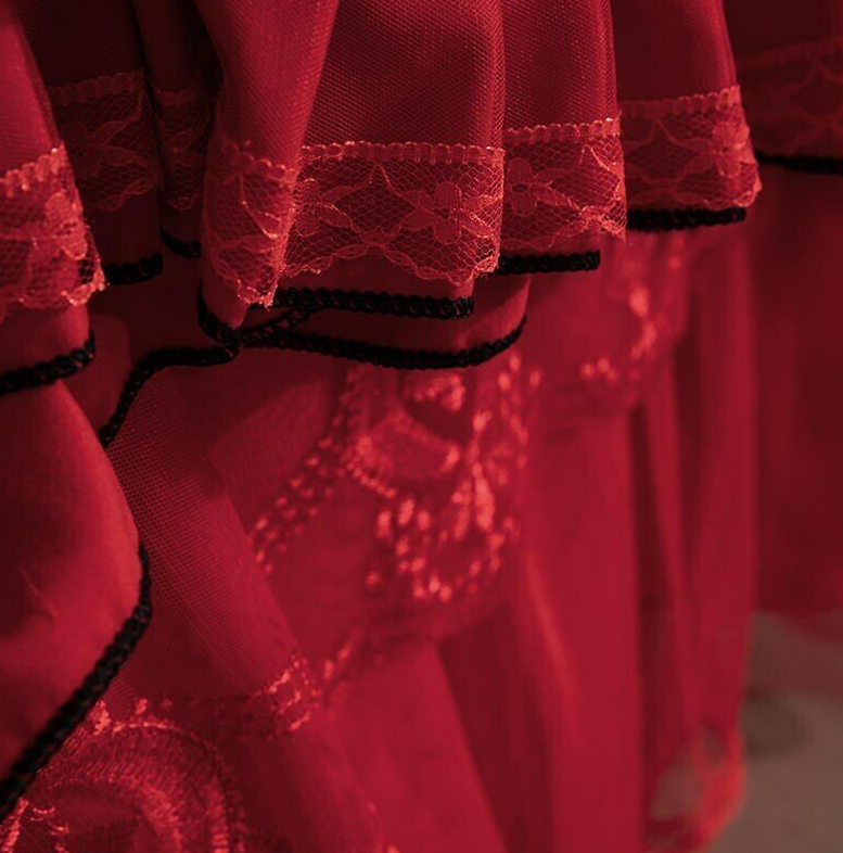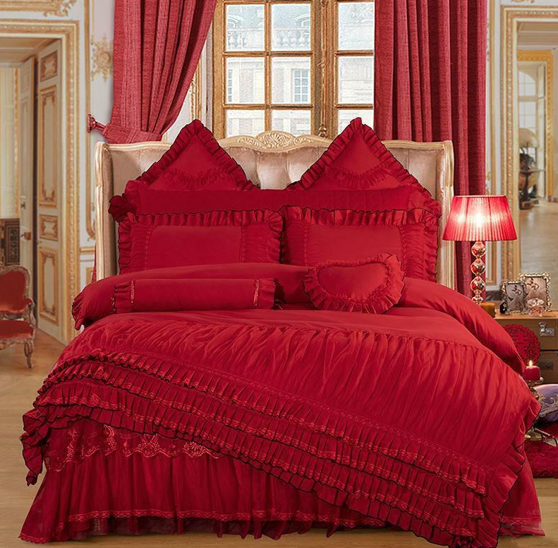 Layers Ruffles Lace Princess Pink Wedding Bedding Set Duvet Cover Bed Skirt NEW