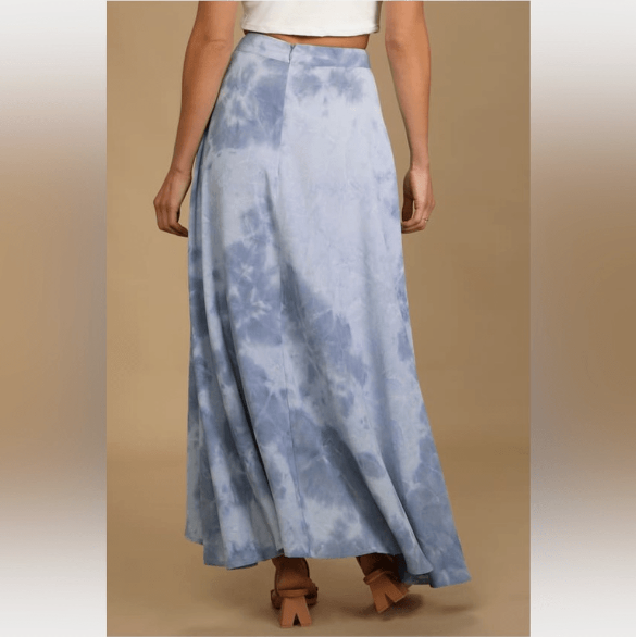 Lulus Exclusive! No need to daydream forever! The Lulus Above the Clouds Blue Tie-Dye High-Low Midi Skirt is here to elevate your style to infinity and beyond with its lightweight and breezy woven composition that shapes a high, banded waist and an overlapping silhouette that ends at a flowy high-low hem. Hidden back zipper/clasp.