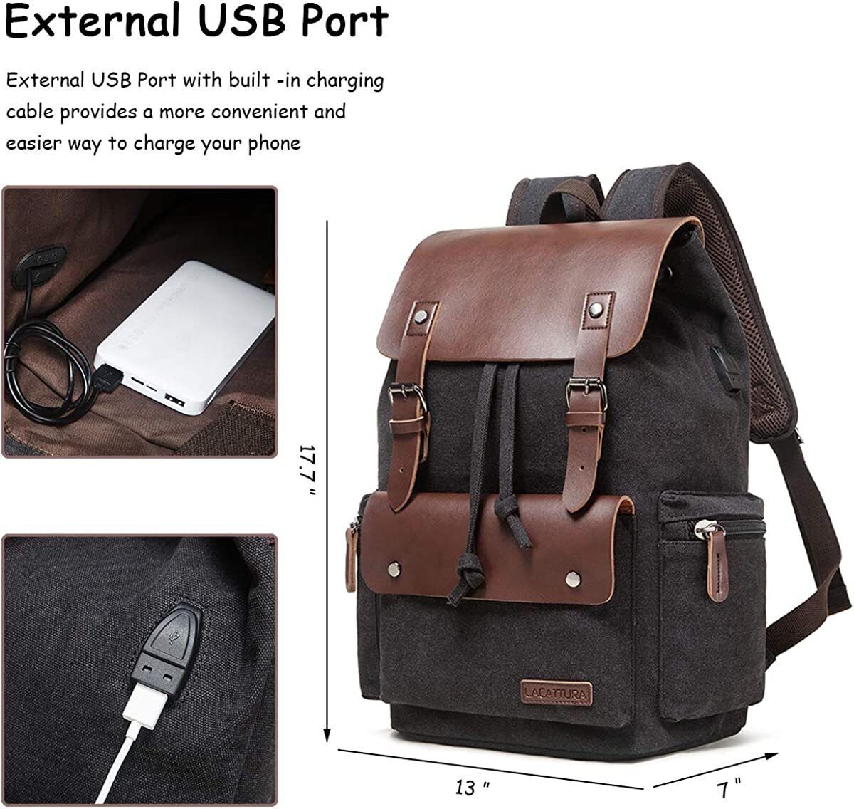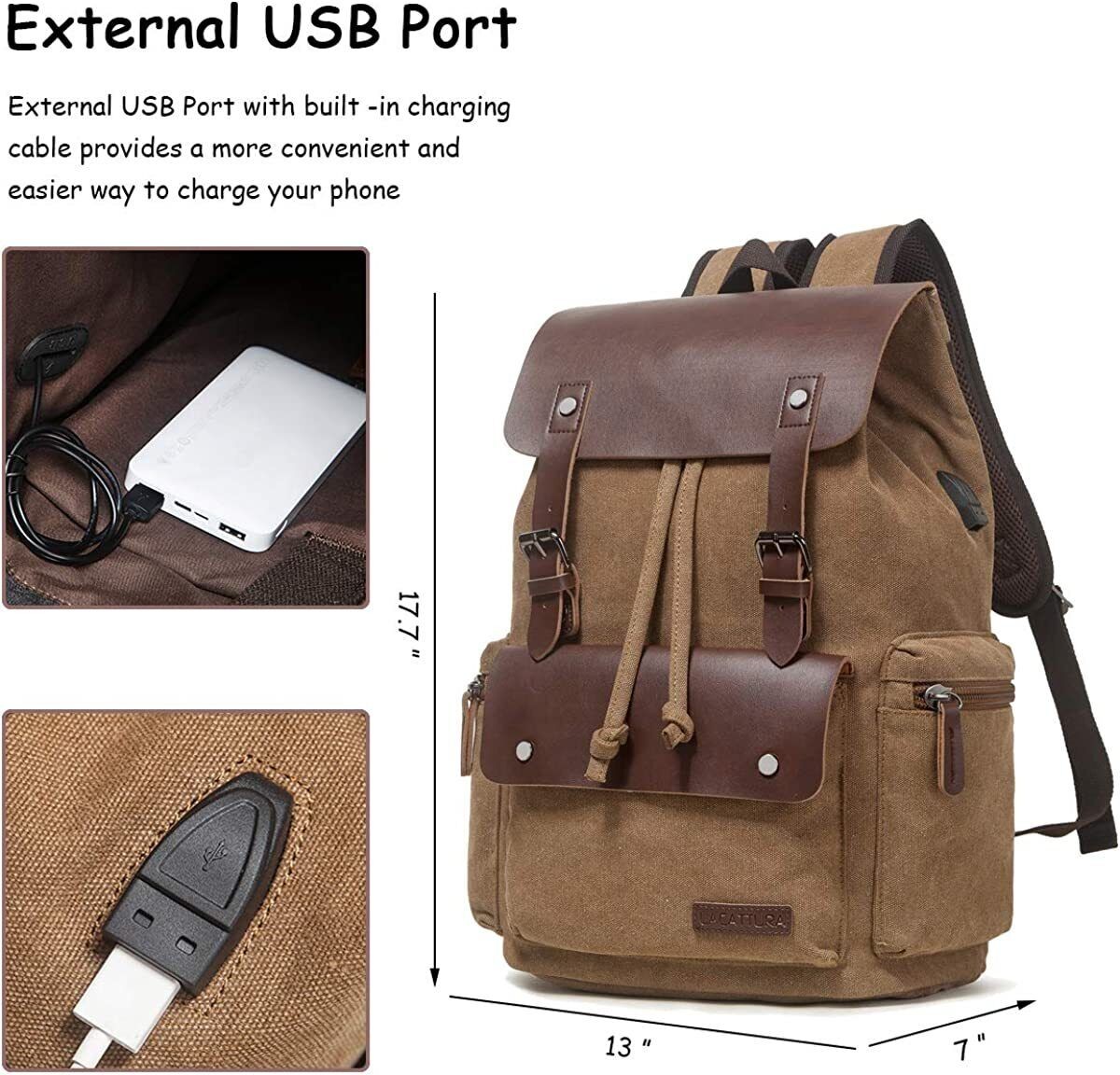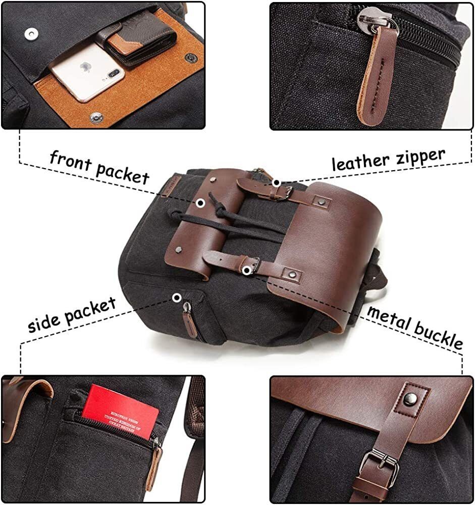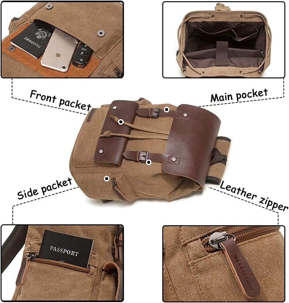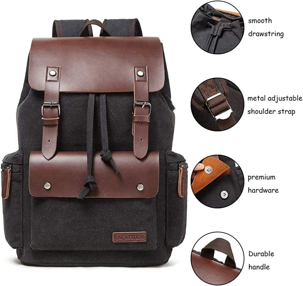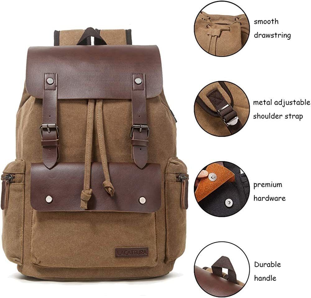 Men Vintage Leather School Travel Backpack Canvas Laptop Hiking Rucksack