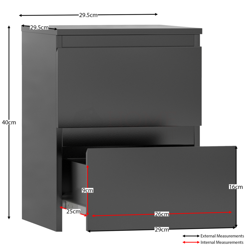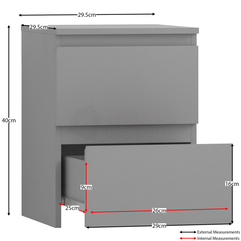 Modern 2 Drawer Chest of Drawers Bedside Table Nightstand Bedroom Furniture