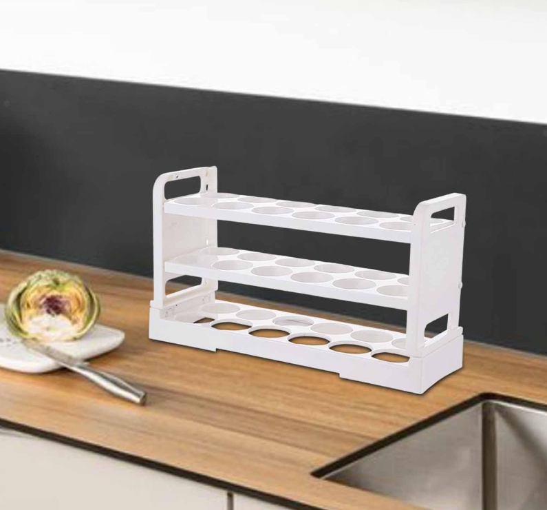 Multi Layer Egg Storage Box with Handle Space Saver for Fridge Countertop
