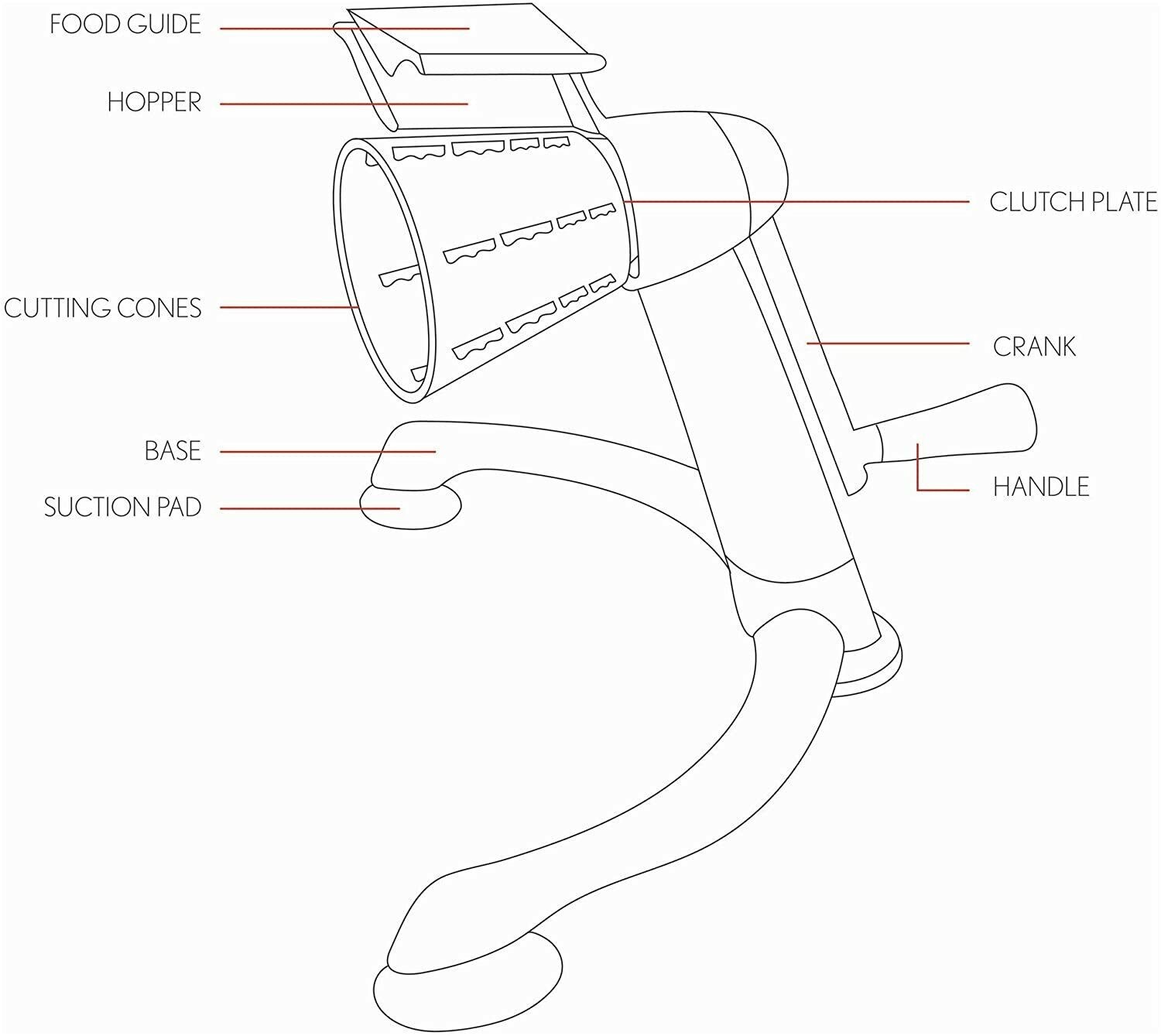 1. Come with 5 different drums blades, which is great for cheese, vegetables, potatoes, nuts, onions, salad, pizza toppings and more.